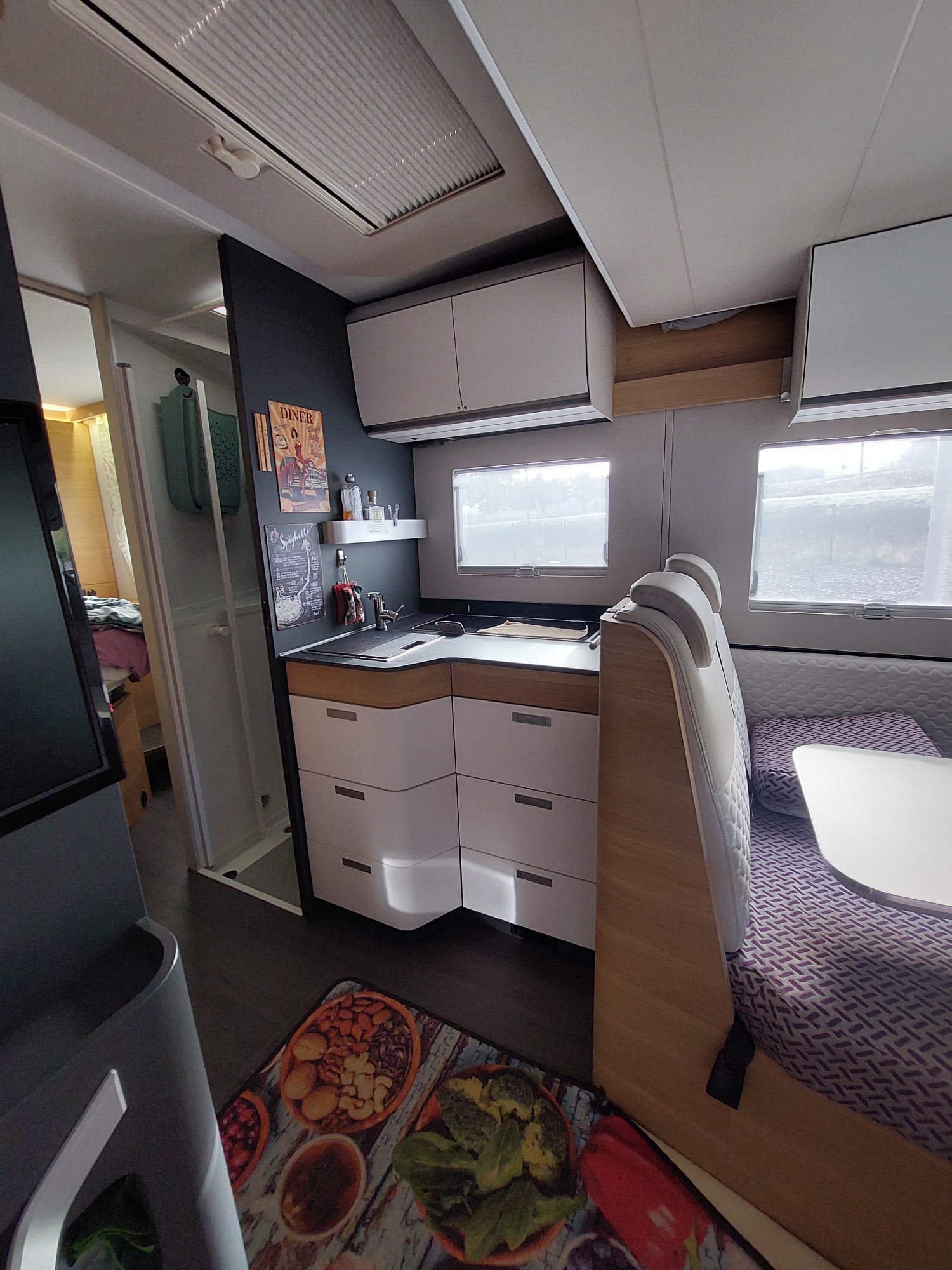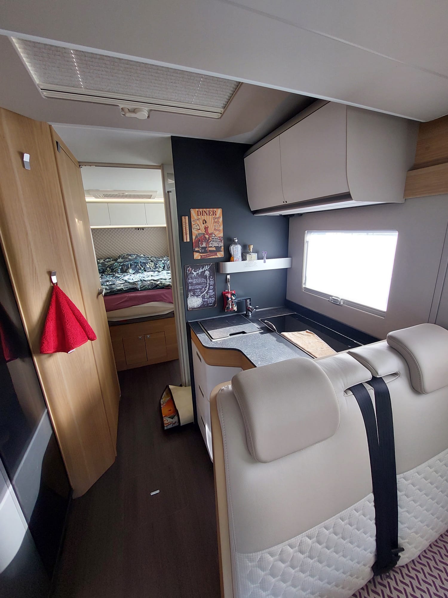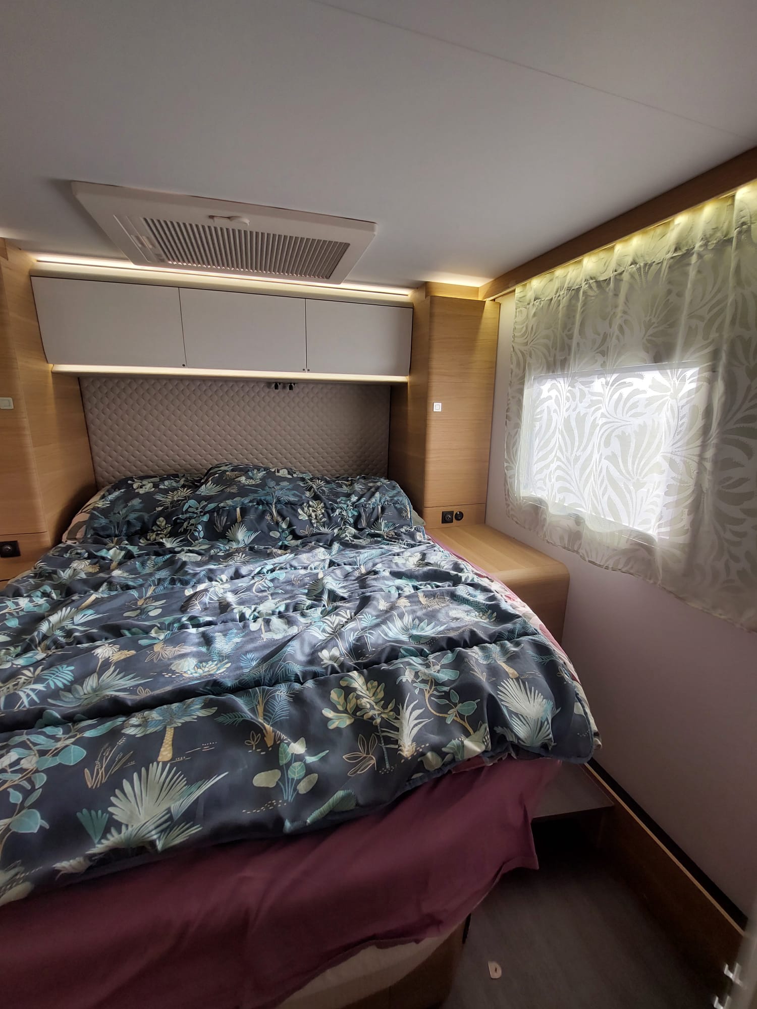 Imaginez un matin au cœur de la nature. La lumière entre doucement dans votre espace de vie, le café chauffe pendant que la route vous appelle déjà vers une nouvelle destination. À bord du profilé d’Emmanuelle et Denis, chaque détail a été pensé pour transformer votre escapade en un véritable moment de sérénité. Son design moderne, ses finitions élégantes et son espace intérieur généreux créent une atmosphère chaleureuse et raffinée. La chambre avec lit central vous offre le confort d’une véritable suite, la cuisine équipée invite à partager des instants gourmands et la salle de bain fonctionnelle assure votre bien-être, où que vous soyez. Plus qu’un camping-car, le profilé d’Emmanuelle et Denis est une invitation à voyager librement, sans compromis sur le confort et l’élégance.